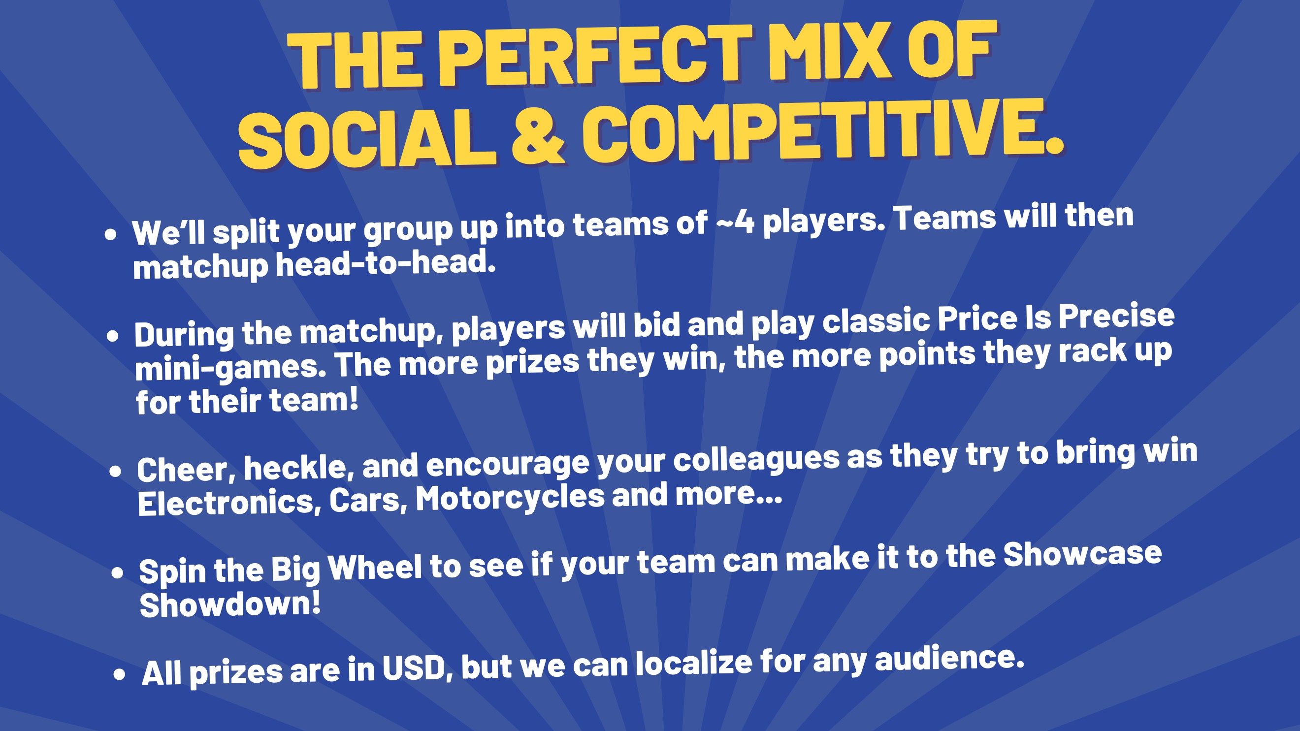 💡 The Price Is Precise is perfect for teams that want the fun of a classic TV game show mixed with a fresh team-building twist. Every player has a chance to shine individually while contributing to their team’s overall success.